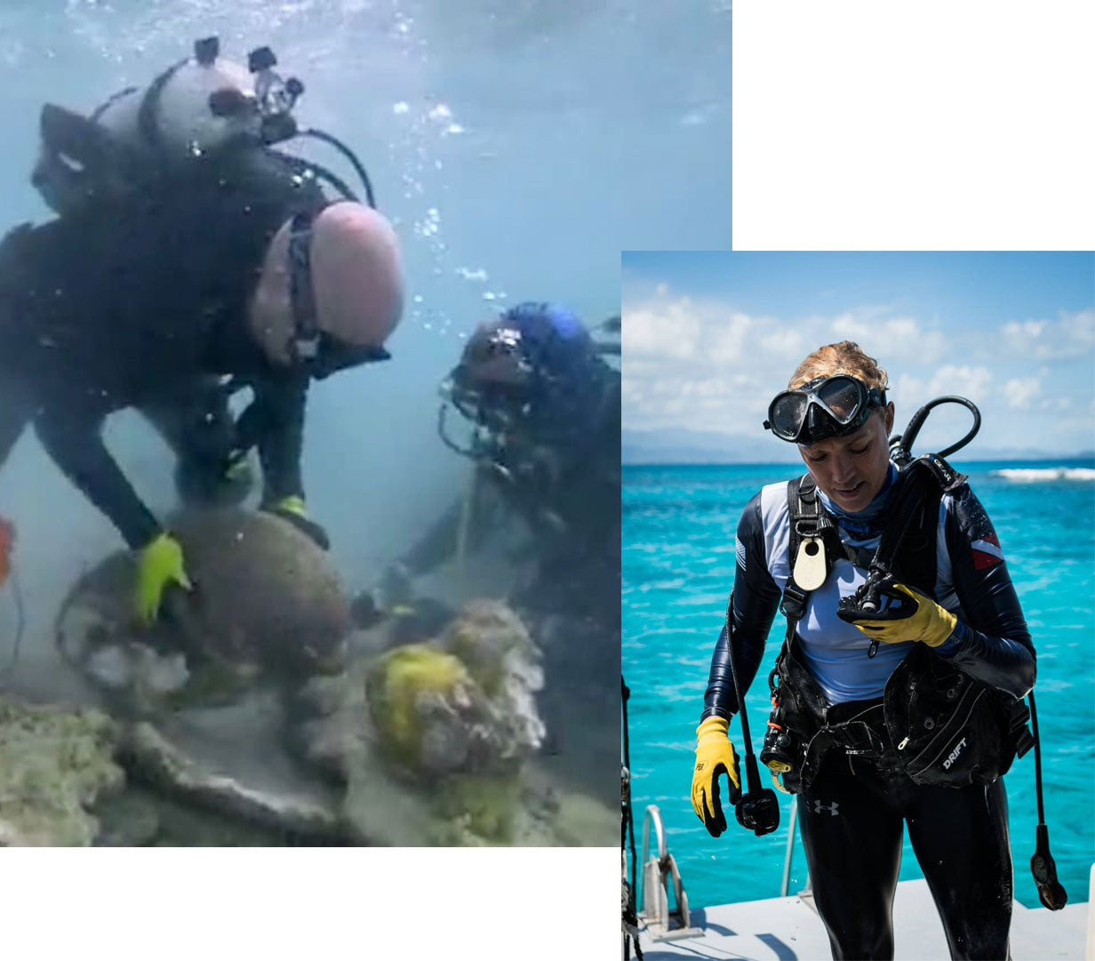 Force Blue recruits retired combat divers and retrains them to conduct critical conservation work alongside marine scientists. Force Blue calls it “mission therapy.” These missions run the gamut, from capturing and treating sick sea turtles to providing emergency reef restoration in the wake of hurricane damage.